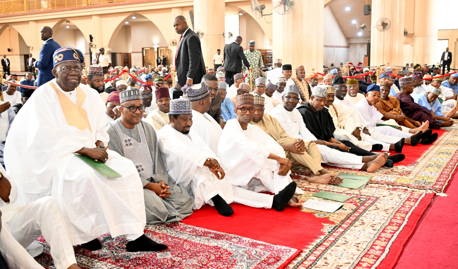 President Tinubu arrived at the mosque a few minutes after 3:00 p.m., where he participated in the special prayers and later observed the Asr prayer with Muslim faithful before departing the venue.